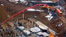 日前,随着最后一方C60高性能混凝土浇筑到596.5米处,天津高银金融117大厦主塔楼核心筒结构成功封顶,这个高度仅次于结构高度601米的迪拜哈利法塔,成为世界结构第二高楼、中国结构第一高楼。此次封顶的成功也标志着三一超高压拖泵再次创造了混凝土单泵垂直泵送新的吉尼斯世界纪录621米。